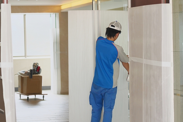 - 作業開始前に、お家、共用部分(エレベーター、廊下など)に傷がつかないように養生作業を行います。